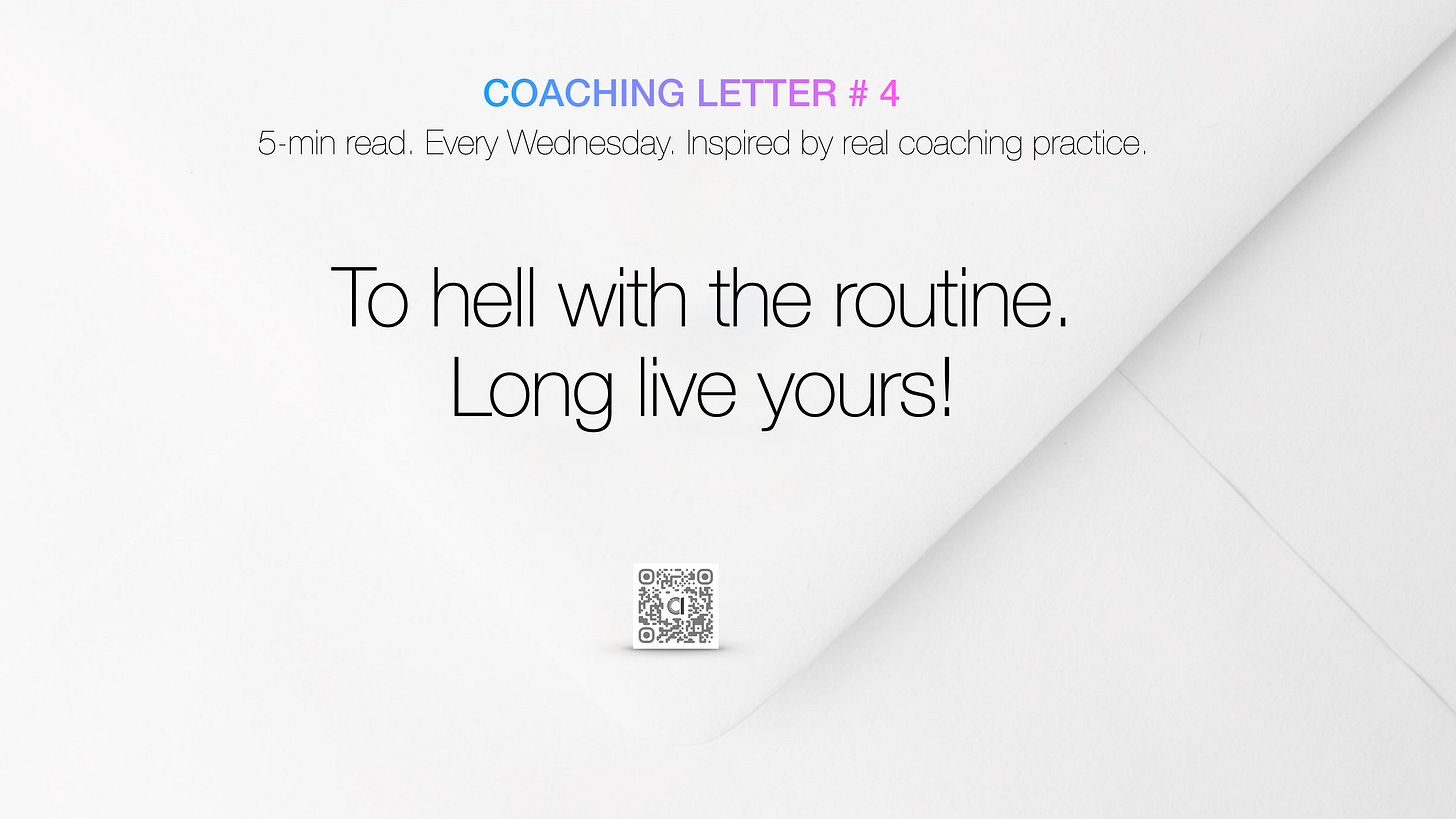 And it reminds you that you’ll have many routineS throughout your life as a leader, because your context, needs, and desires will keep changing. What matters is staying constant in this exercise of adjustment. And that constancy can only exist if you master your own technique. Ready-made methods have their charm, but at best, they age poorly; at worst, they hurt. The only one that works is the one you make yours, written in the first person.