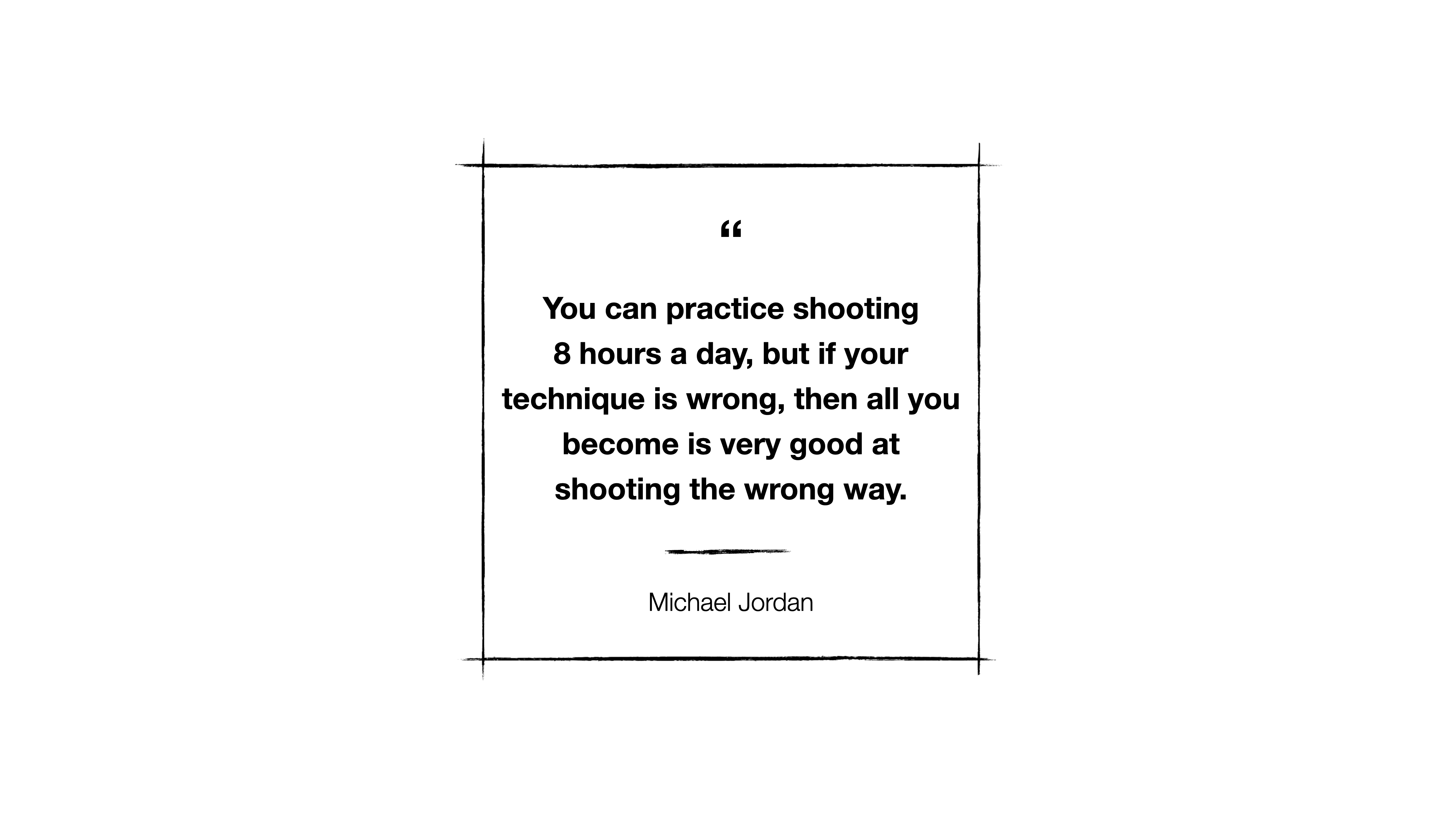 Michael Jordan, in his own way, seems to agree: “You can practice shooting eight hours a day, but if your technique is wrong, then all you become is very good at shooting the wrong way.”