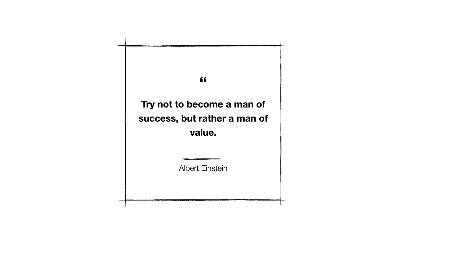 Einstein said: “Try not to become a man of success, but rather a man of value.”