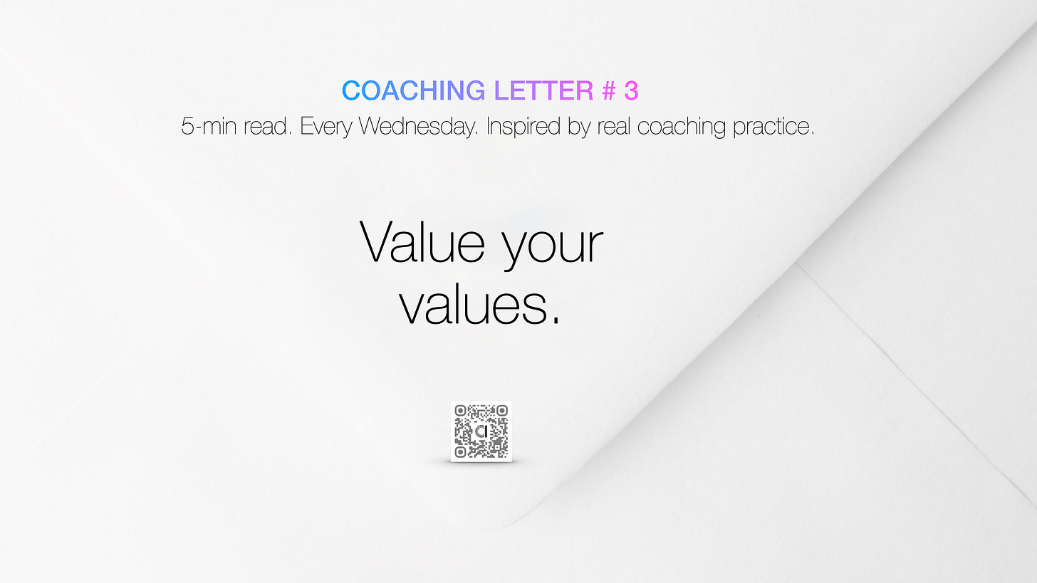 Need more? Help me to help you. If this letter resonates, if you want to value your values, work on them, join the discussion and share your thoughts — I’ll always reply, and whenever possible help you push your reflection further.